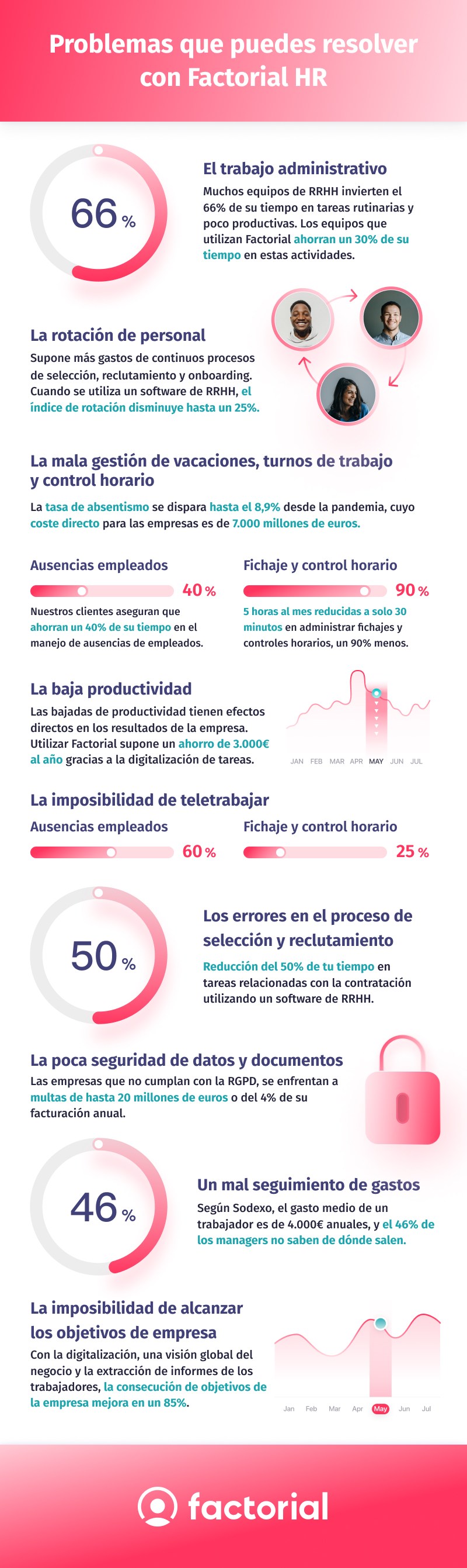 ✓ Con Factorial ahorra 30 horas al mes en tareas administrativas de recursos humanos.